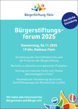 Die Bürgerstiftung Flein lädt herzlich ein zum diesjährigen Bürgerstiftungsforum